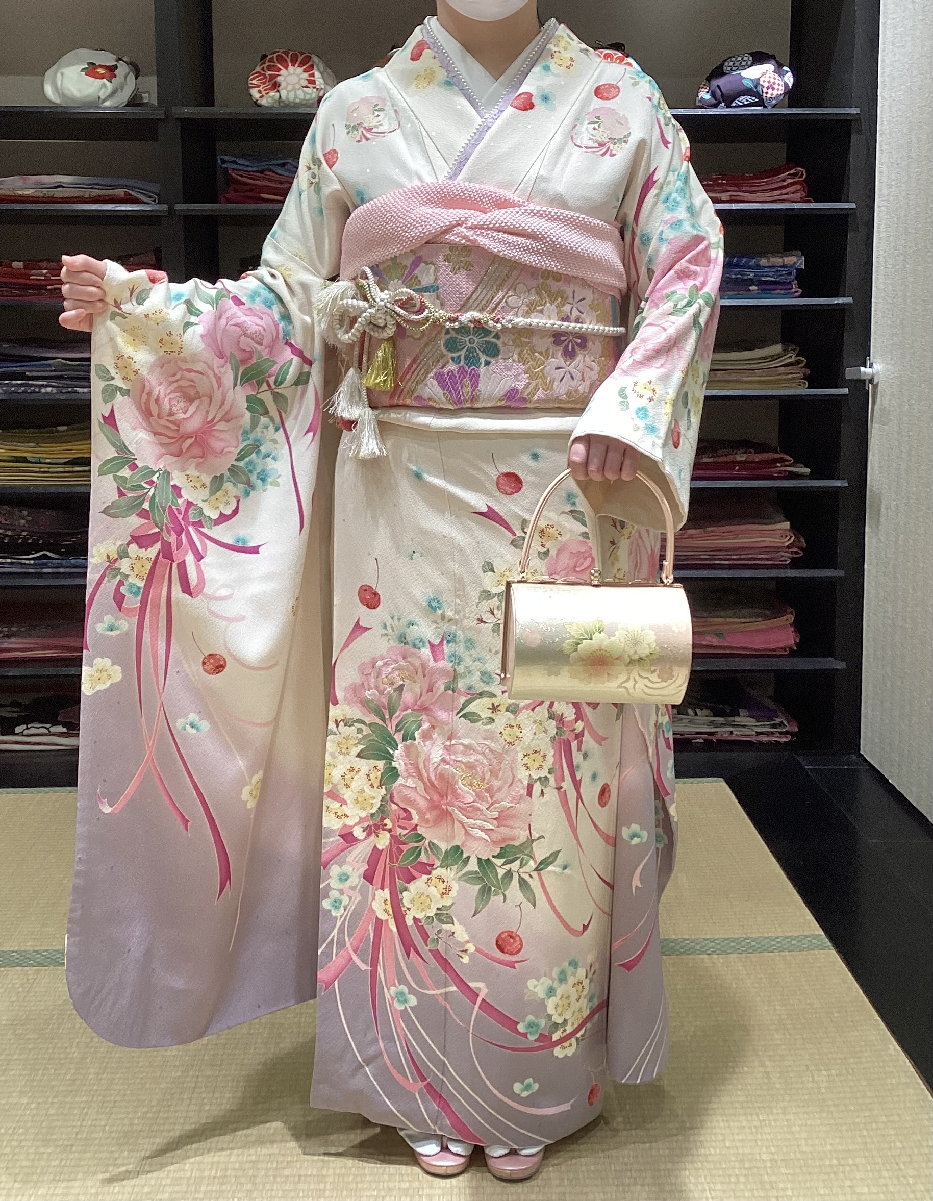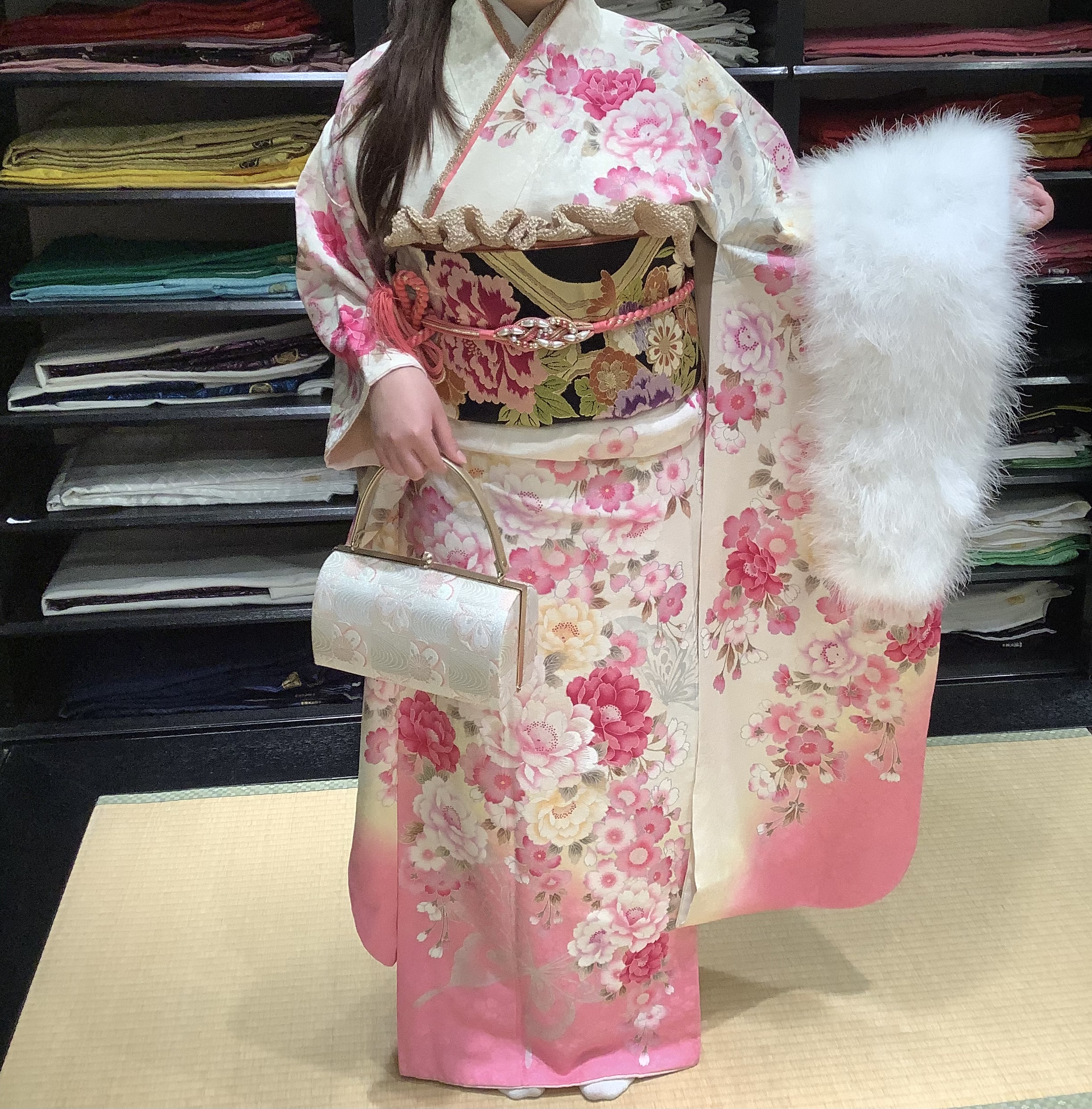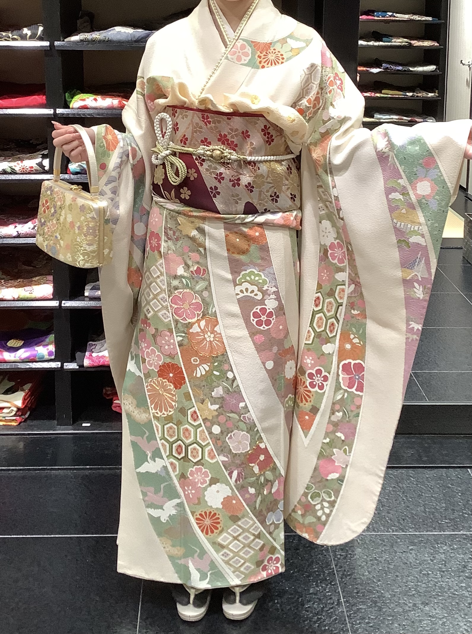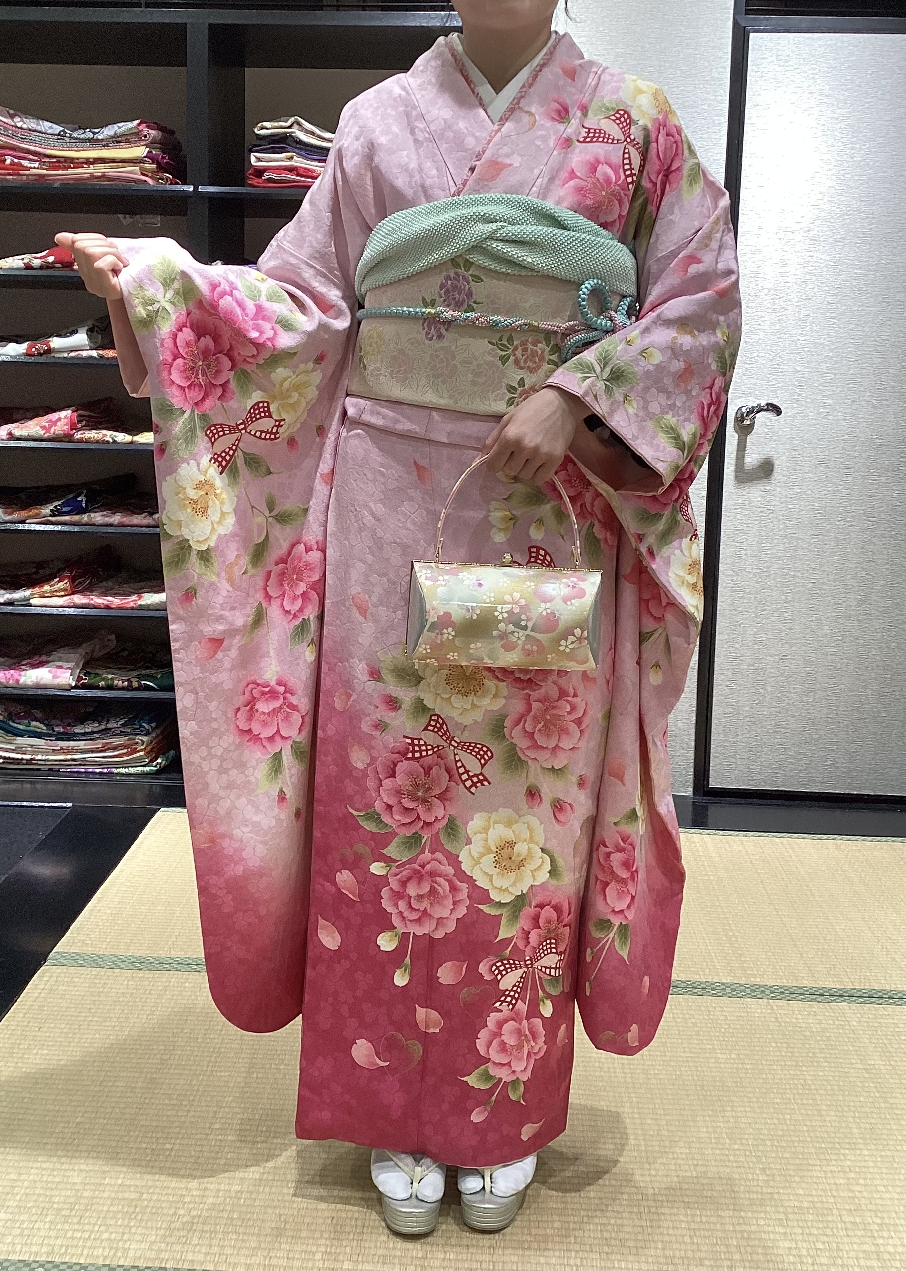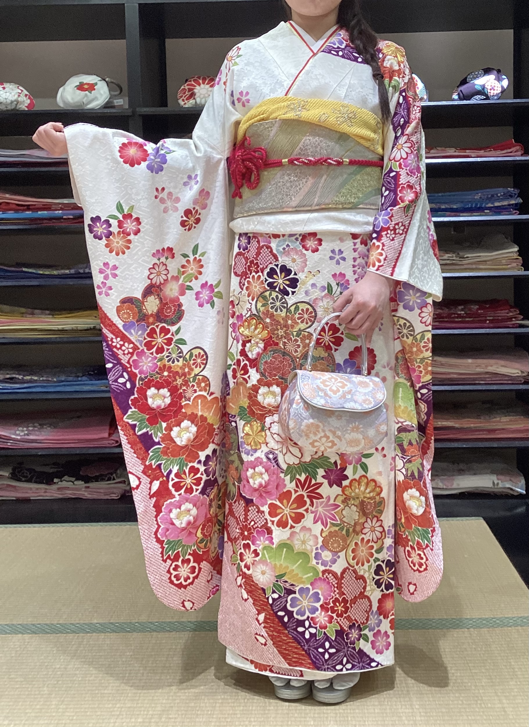(未仕立て振袖)を、お嬢様のサイズに合わせてレンタルができる