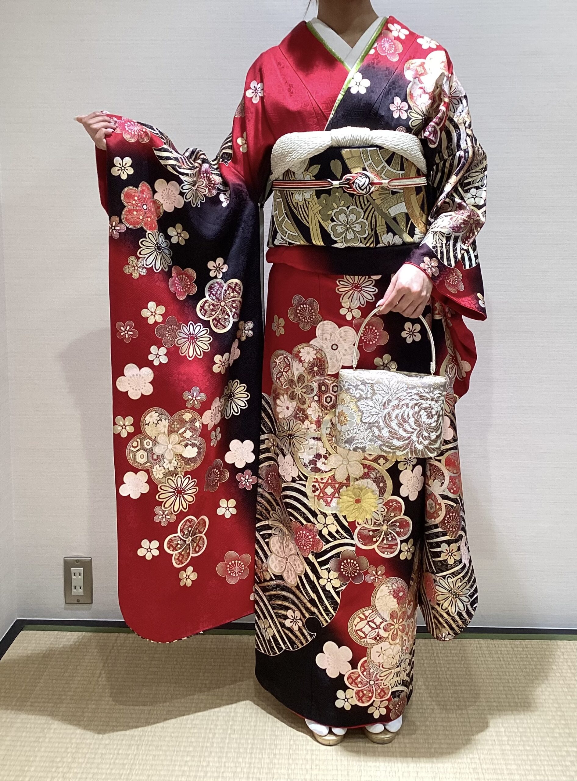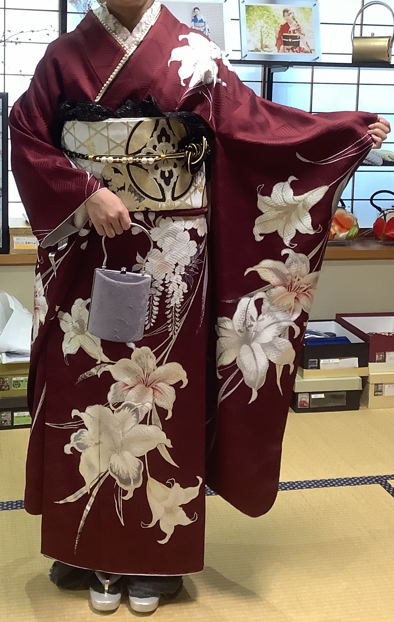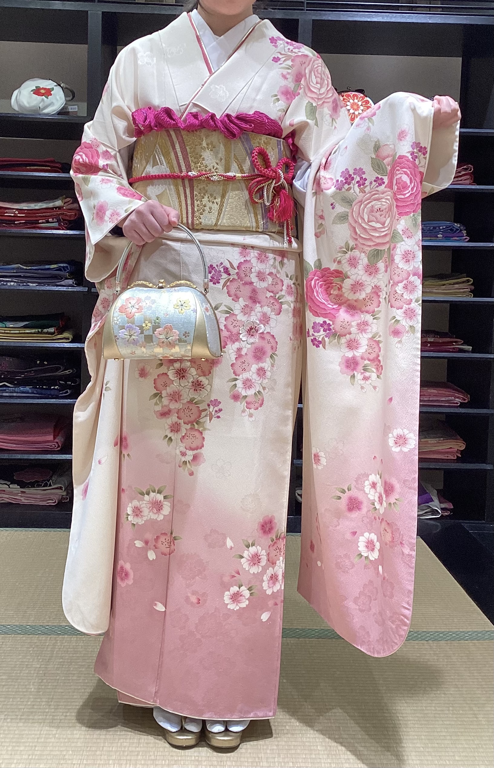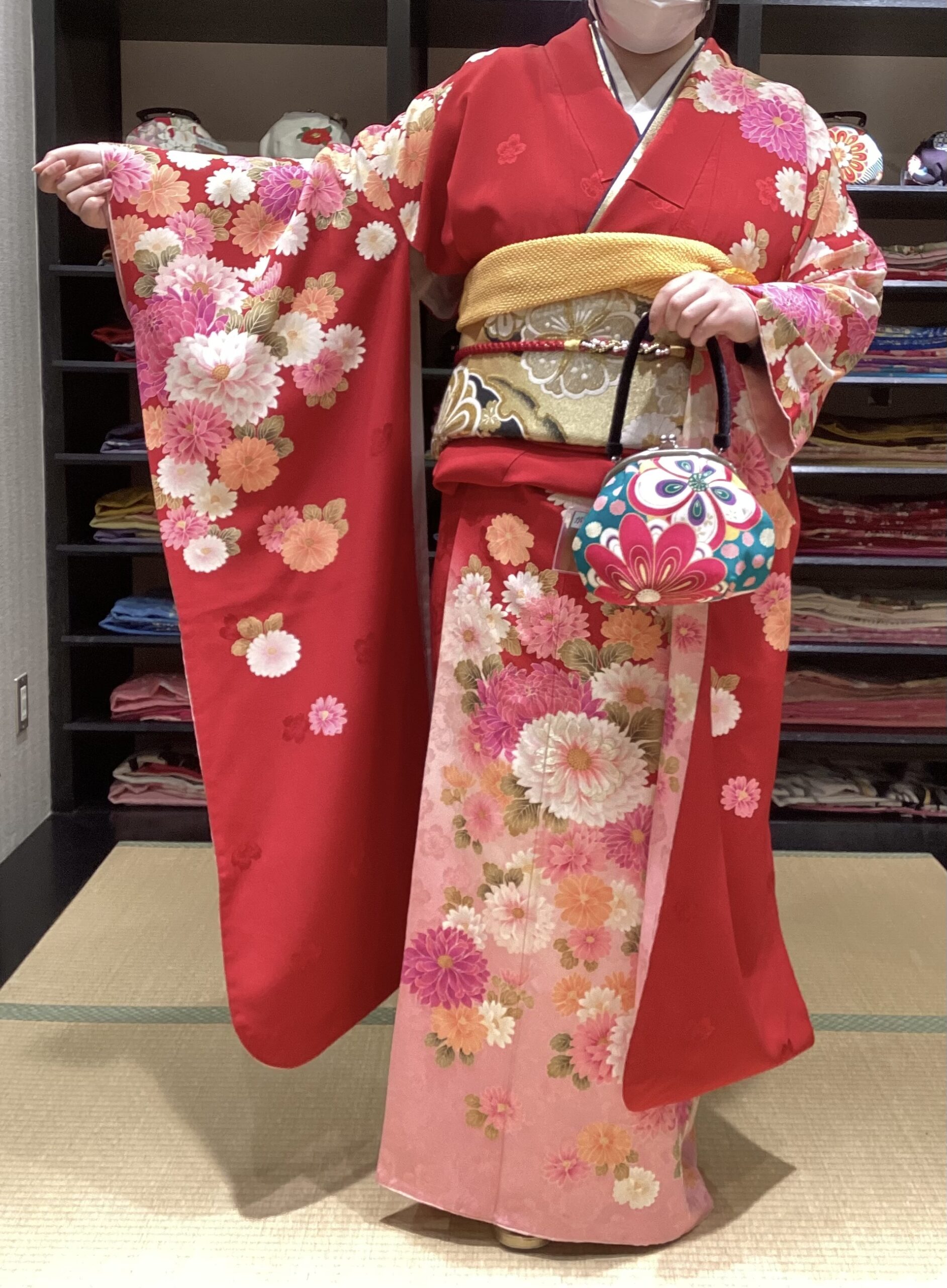 (未仕立て振袖)を、お嬢様のサイズに合わせてレンタルができる
