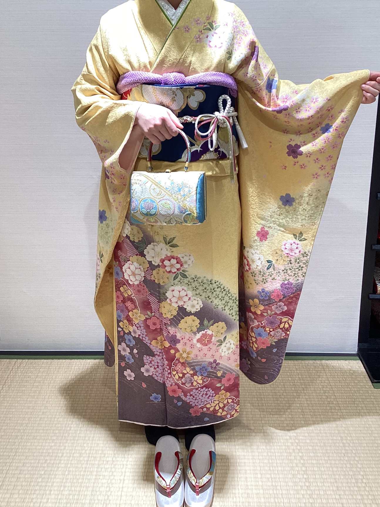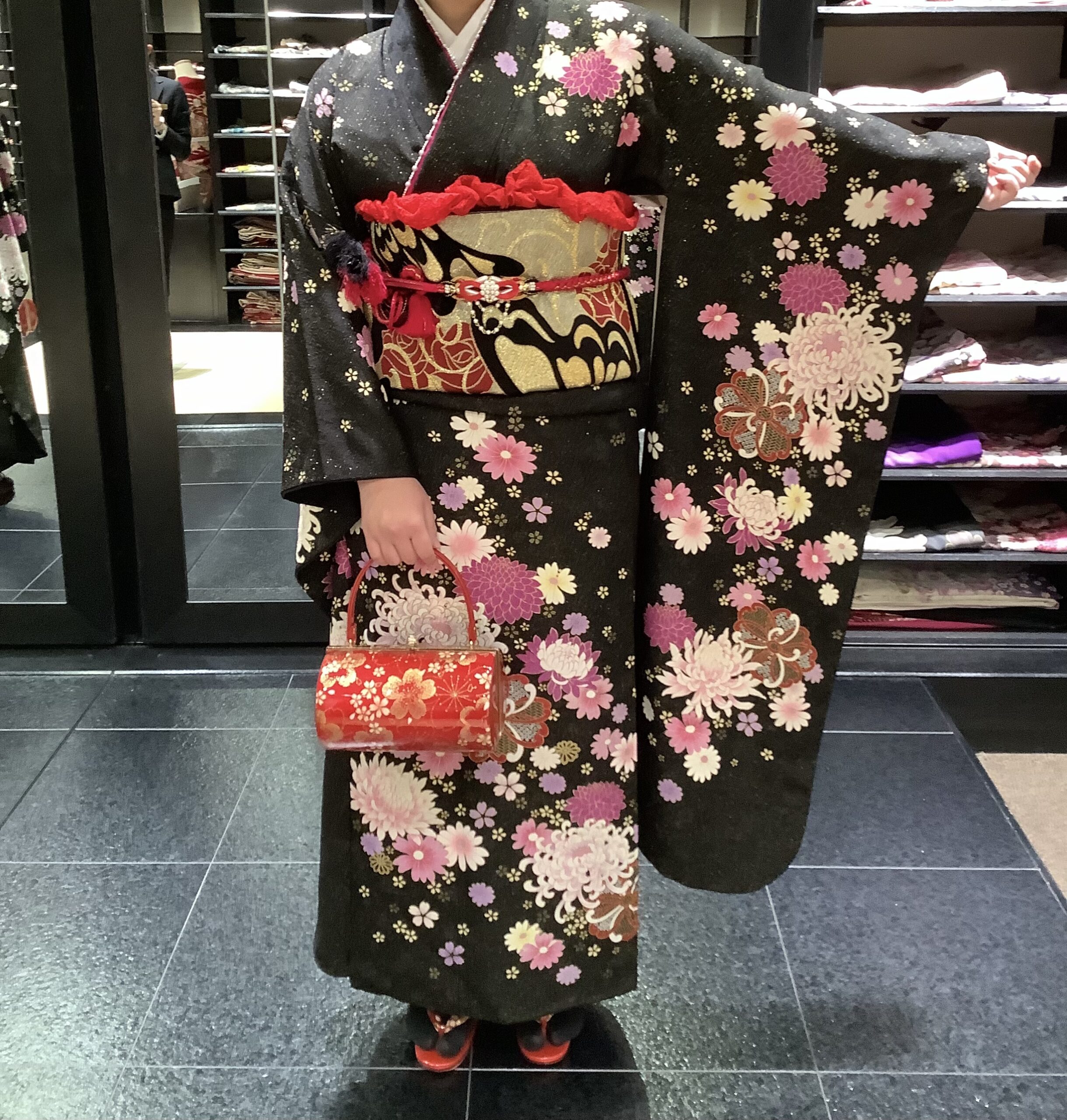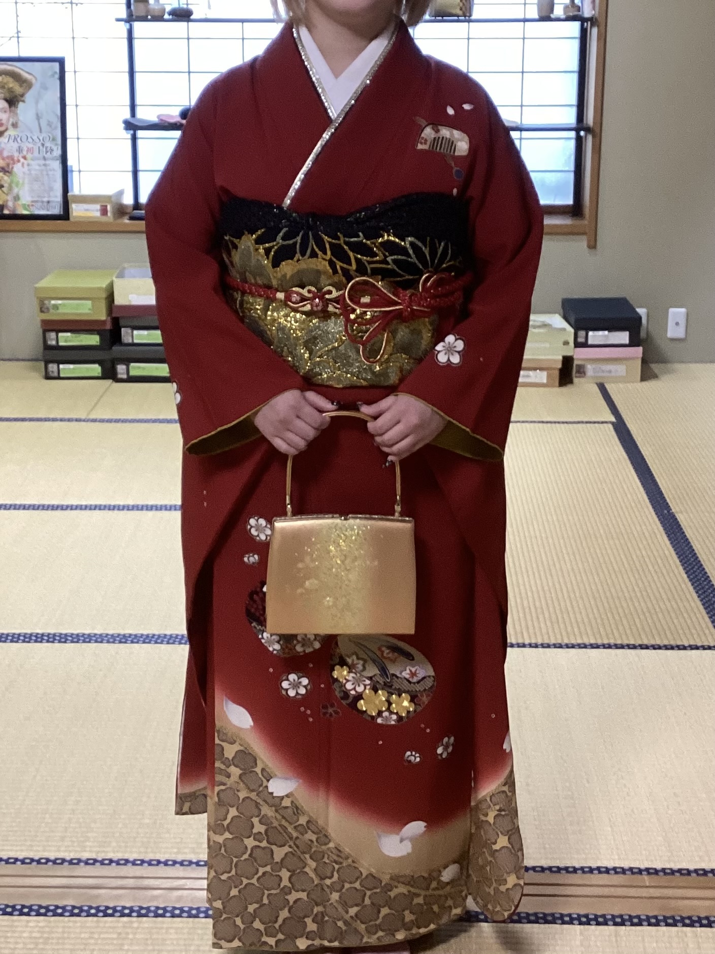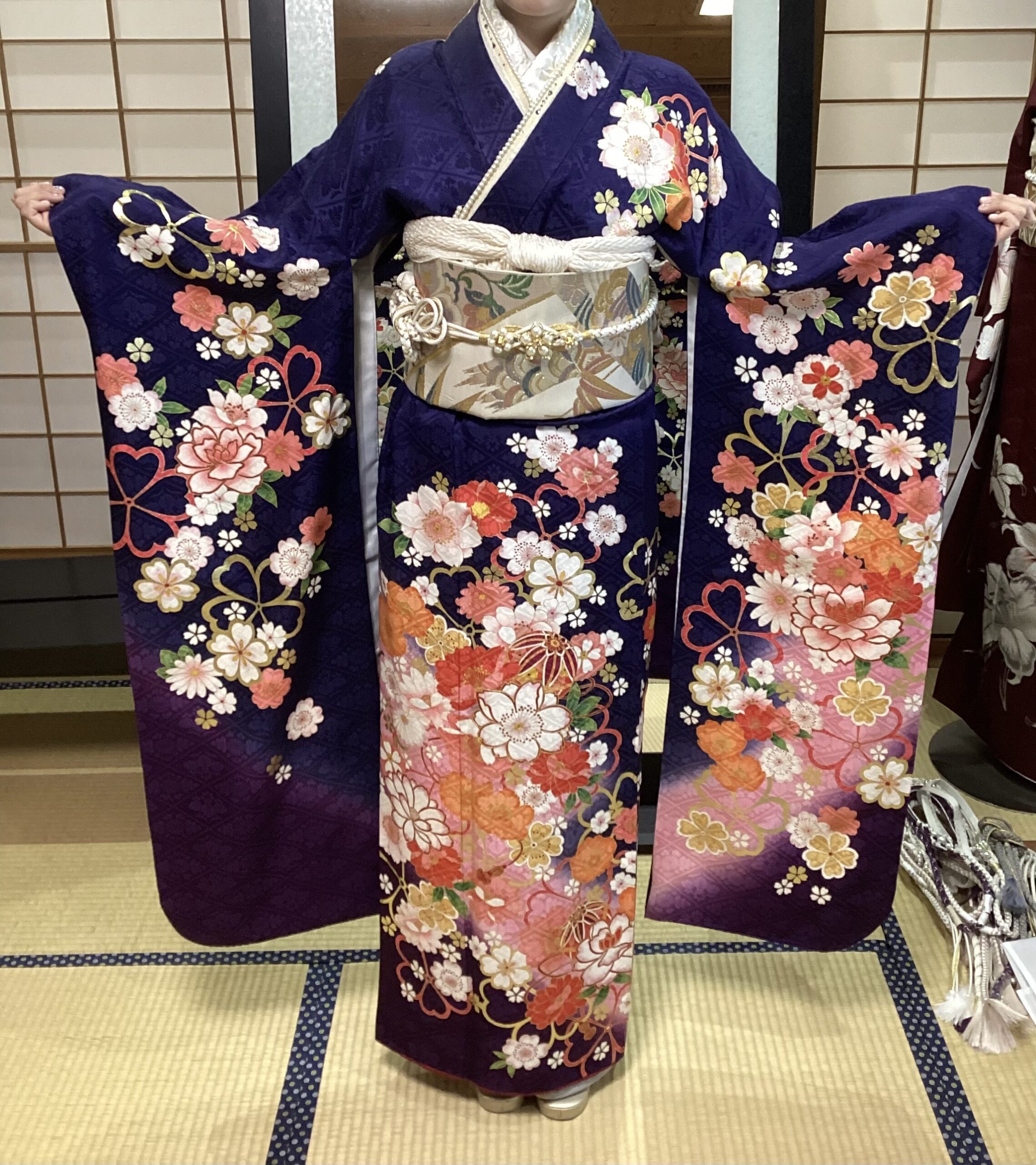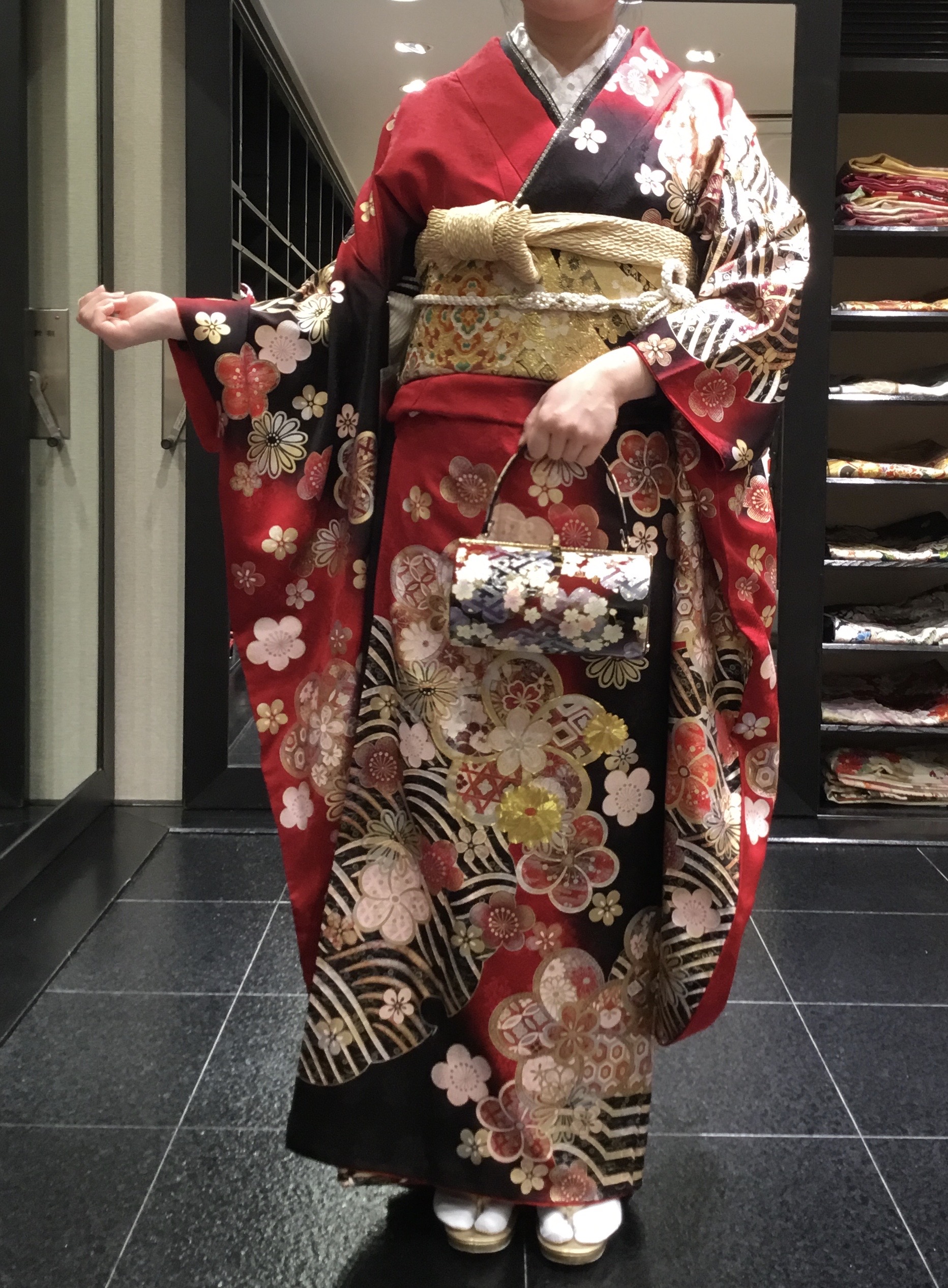 (未仕立て振袖)を、お嬢様のサイズに合わせてレンタルができる